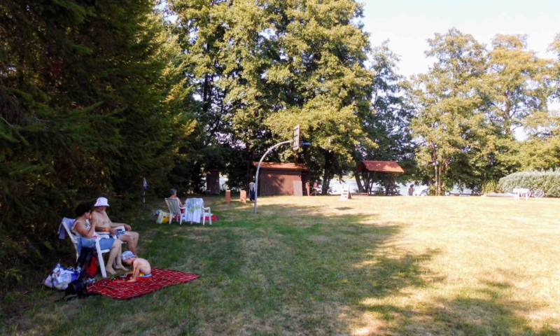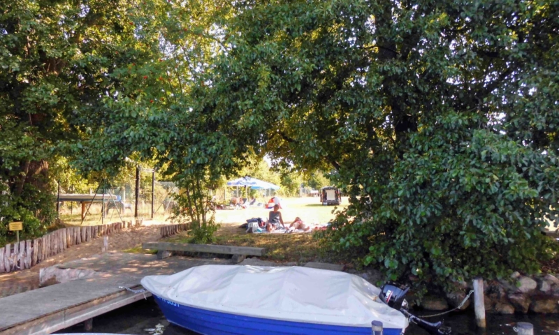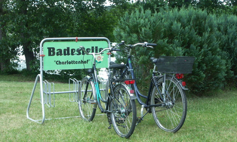 Zechlinerhütte ist ein sehr langgestreckter Ort, da er an fünf Seen liegt. Die Badestelle befindet sich in der Ortslage von Zechlinerhütte und ist nicht unmittelbar am Charlottenhof. Die Ferienwohnungen sind 150m vom Schlabornsee entfernt und die hauseigene Badestelle befindet auf sich einer Halbinsel im Zootzensee. Die Badestelle mit Liegewiese sowie Sport- und Spielflächen ist 4000m² groß. Der Badeeinstieg ist flach und somit auch für Nichtschwimmer geeignet. Direkt am Ufer befindet sich eine überdachte Sitzgruppe, die zum Kaffee trinken und Kuchen essen einlädt. Desweiteren bietet sie einen Unterschlupf, falls es doch mal regnet. Außer der überdachten Sitzgruppe befinden sich noch weitere Sitzgruppen sowie Sonnenliegen mit Sonnenschirm auf der Liegewiese, die sie auf Wunsch in die Sonne oder in den Schatten umstellen können. Parkplätze und Fahrradständer, sowie ein kleines Herzhäuschen sind auf der Anlage.