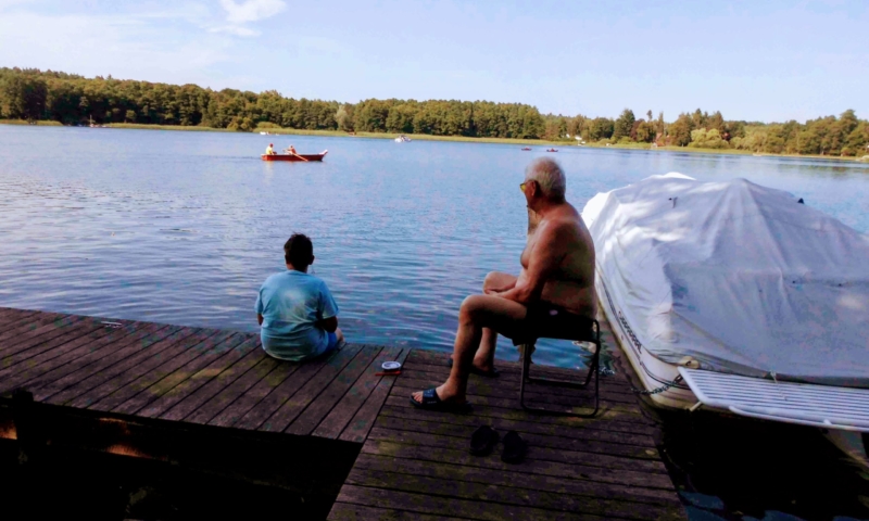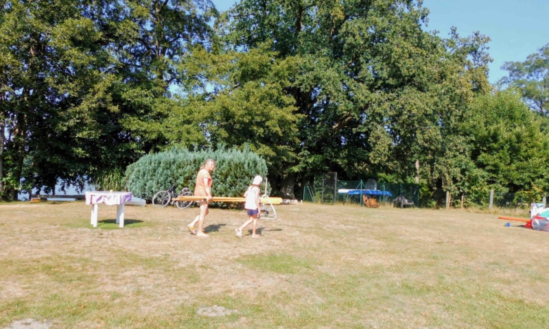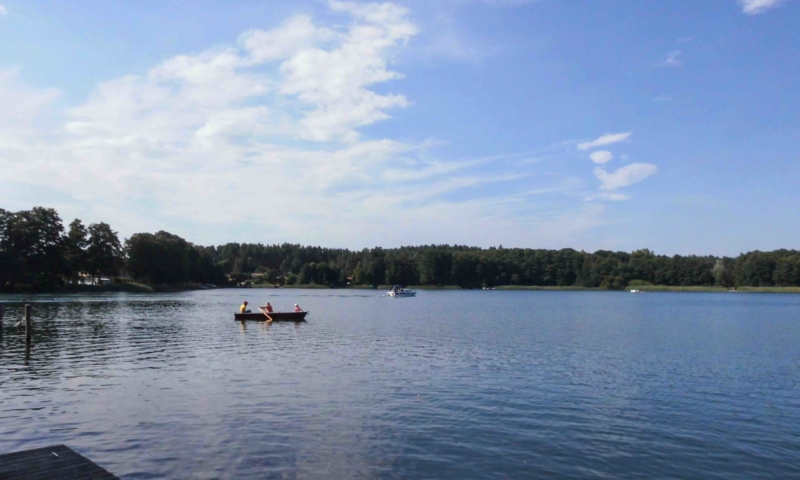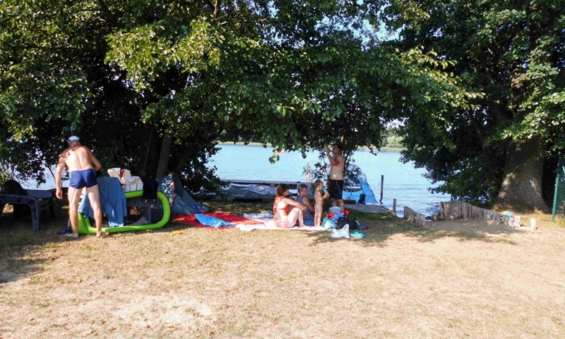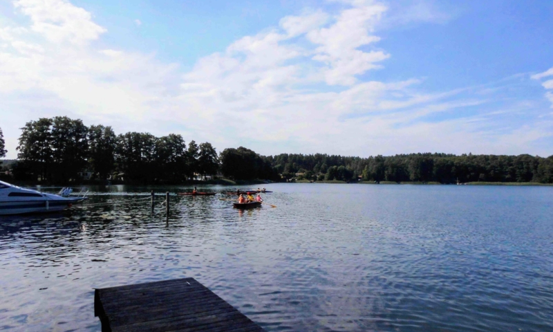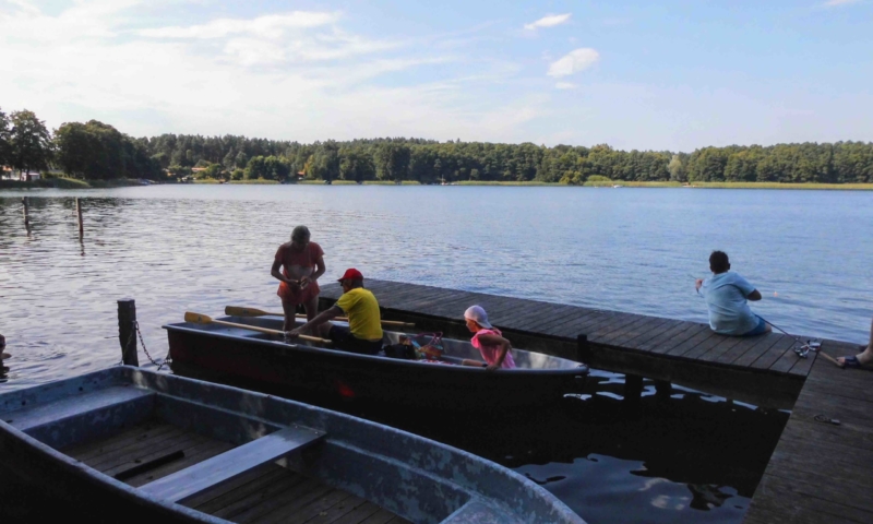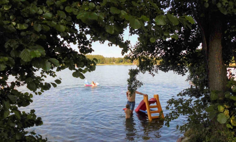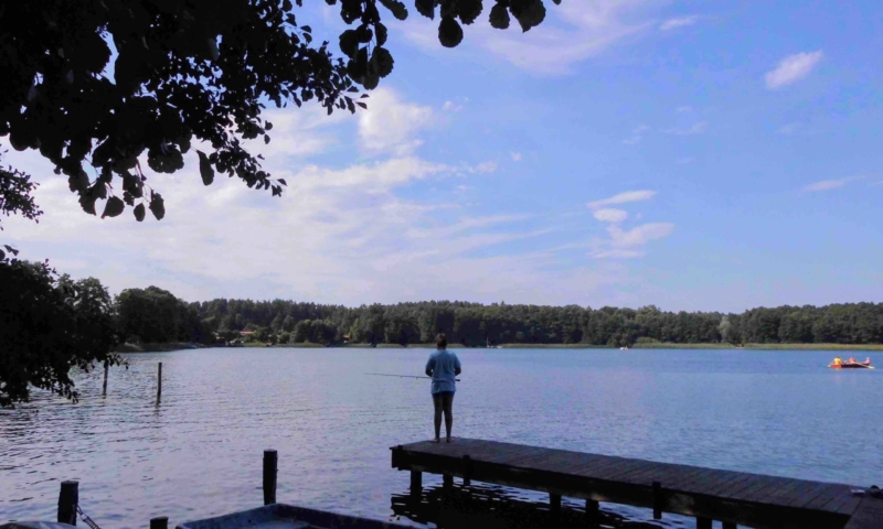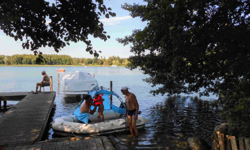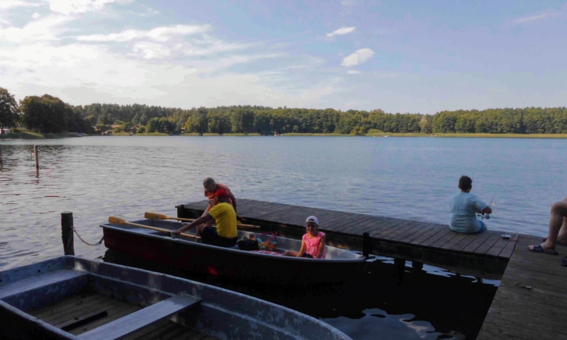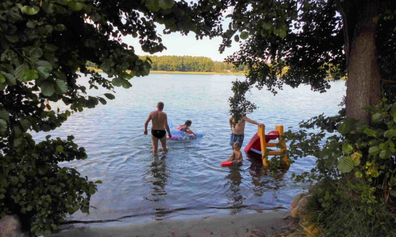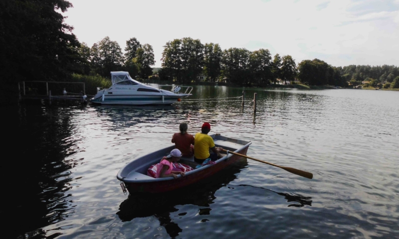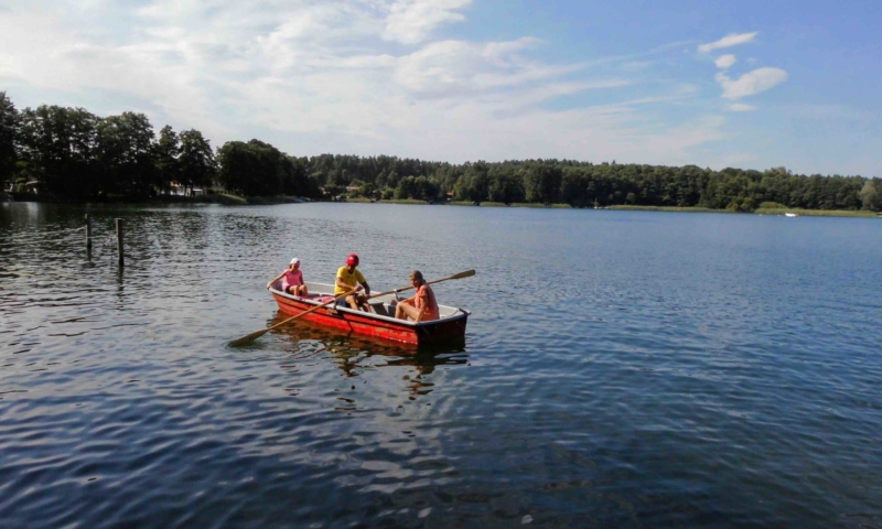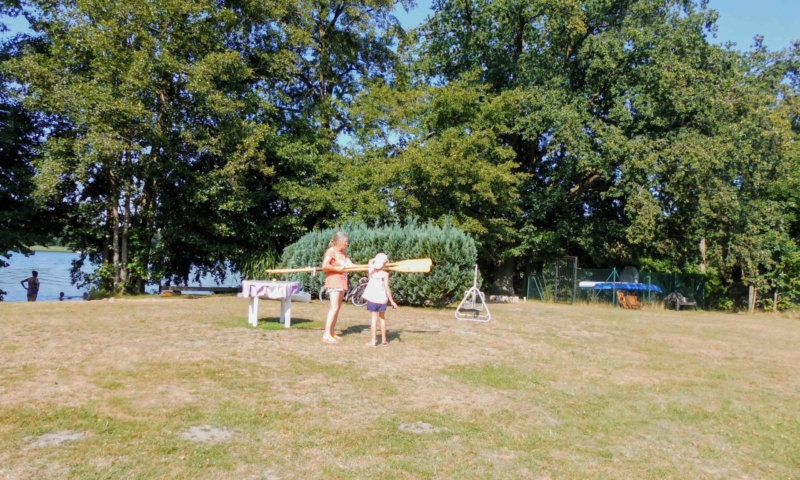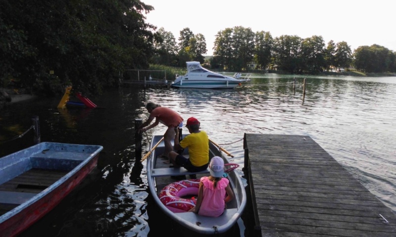 Die Wiese bietet nicht nur genügend Platz zum Sonnenbaden, sondern auch für andere Aktivitäten, wie Federball. Unter anderem haben wir für sie einen Volleyballplatz, einen Basketballkorb und eine Tischtennisplatte errichtet. Für die Kleinen lädt eine Sandkiste, eine Kindersitzgruppe und eine Rutsche zum Spielen ein. Ein Steg mit Ruderbooten ist für Angler und Freizeitkapitäne vorhanden. Zum Ruderboot kann ein Außenbootsmotor ausgeliehen werden. Für die Wassersportbegeisterten haben wir zwei 2-er Kajaks, eins mit Steuerung und eins ohne Steuerung. Am Steg ist die Liegemöglichkeit für ein kleines Motorboot vorhanden (auf Anfrage). Von unserem Steg aus können sie bequem in unsere Boote einsteigen oder angeln. Eine Bank bietet die Möglichkeit den Blick auf den See ungestört zu genießen.
